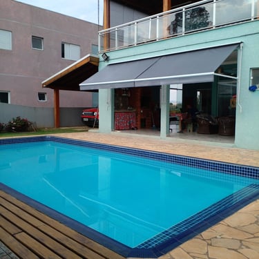 O Toldo Cortina com Braço Reto é ideal para quem busca proteção lateral contra sol, vento e chuva, sem abrir mão da praticidade e do design moderno.