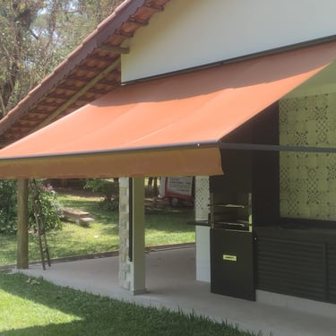Toldo com braço reto e trilho deslizante personalizado para ambientes diversos